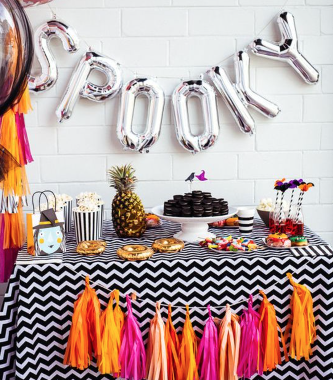 The food and snack table at the party is always where everyone wants to be. Take this opportunity to make the table your main focus for the Halloween decor. These photos both show how these people each chose themes and ran with them. This is a good tip for the decorations as a whole. Whether you want to go with classic black and orange or switch it up and go with blacks, whites, and purples you can’t go wrong!
